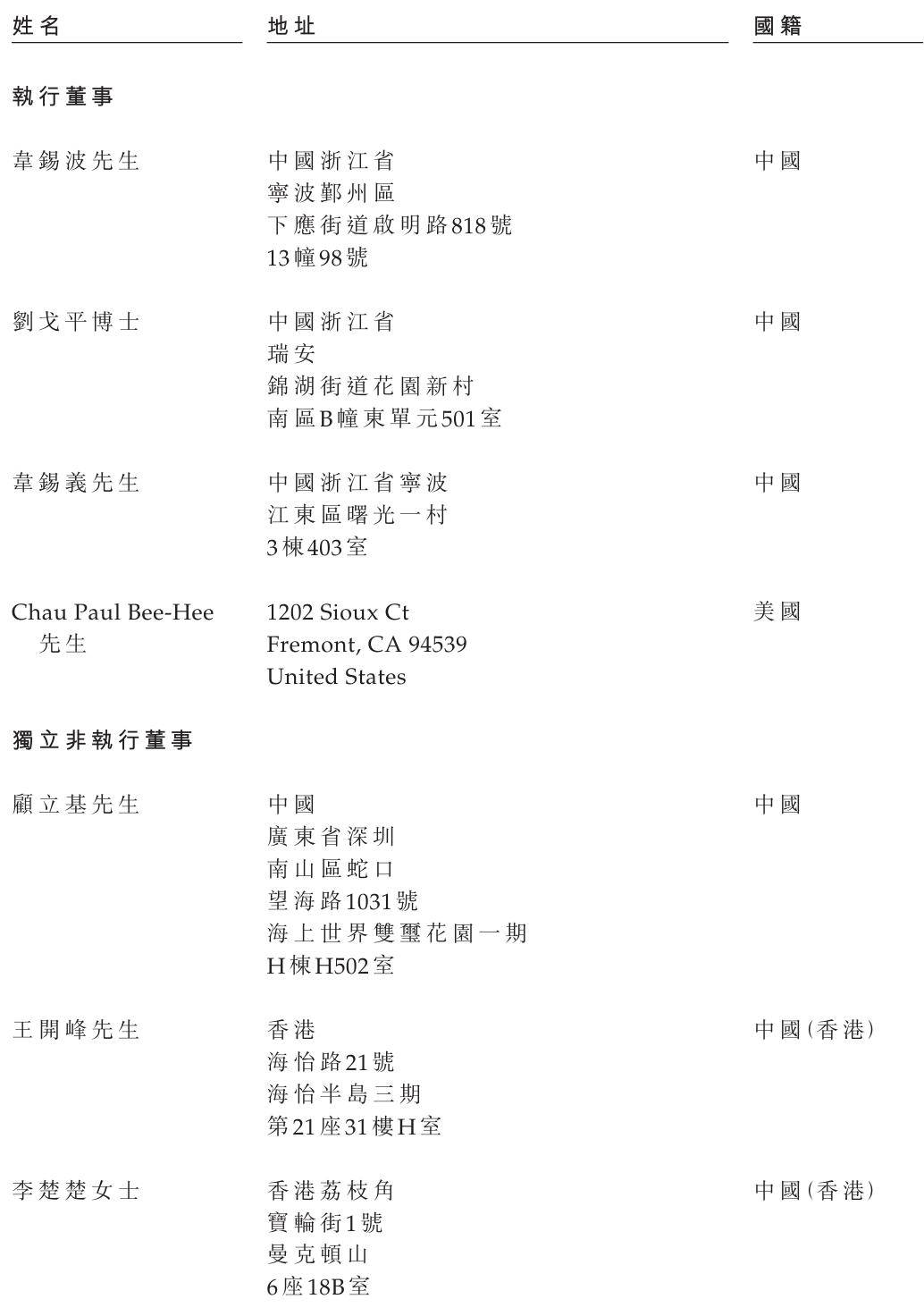 明智科技执行董事分别为韦锡波、刘戈平博士、韦锡义、Chau Paul Bee-Hee;独立非执行董事分别为顾立基、王开峰、李楚楚女士。